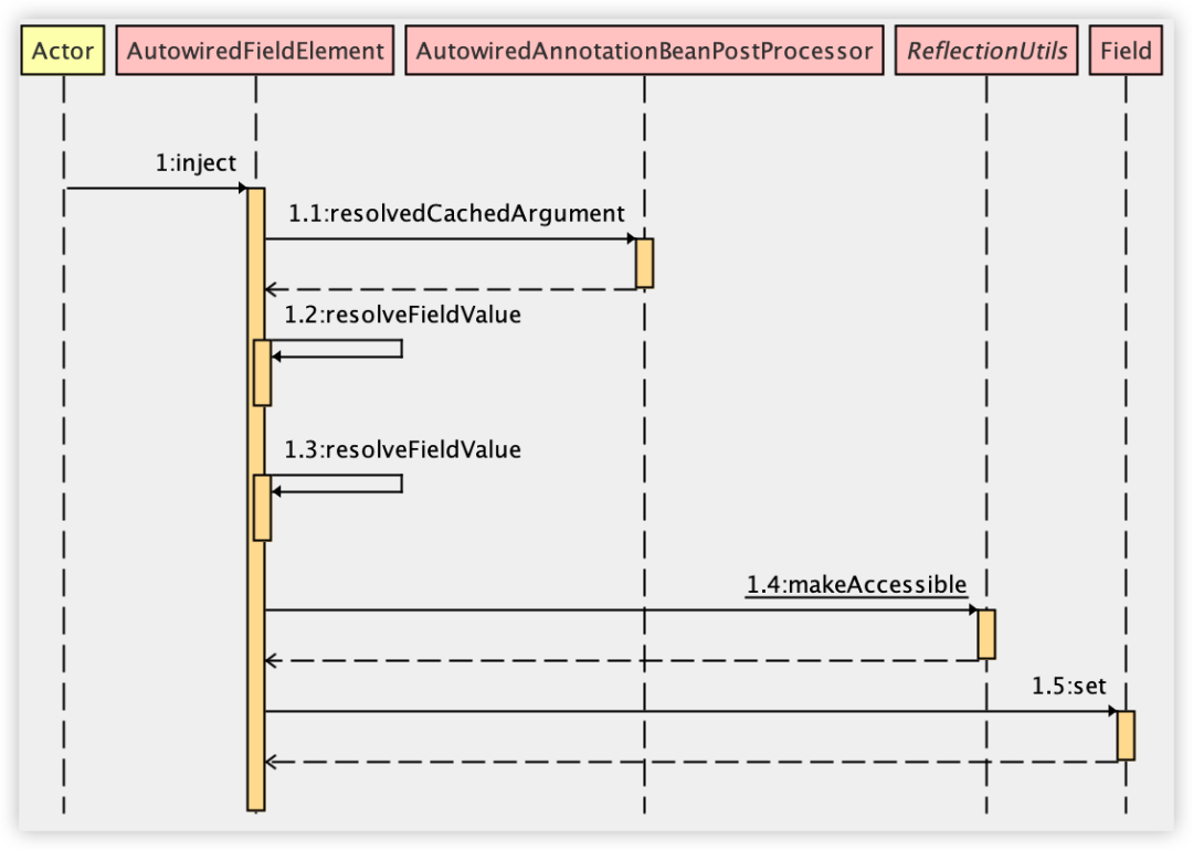 这块的源码分析就不从头开始分析了,可以参考 @Autowired 到底是怎么把变量注入进来的?一文。这里就借用该文的总结,稍微回顾一下属性注入的过程: